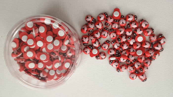 Dimensiunea buburuzelor este 1 cm/ 1,3 cm. Buburuzele sunt roșii cu aripi albe.