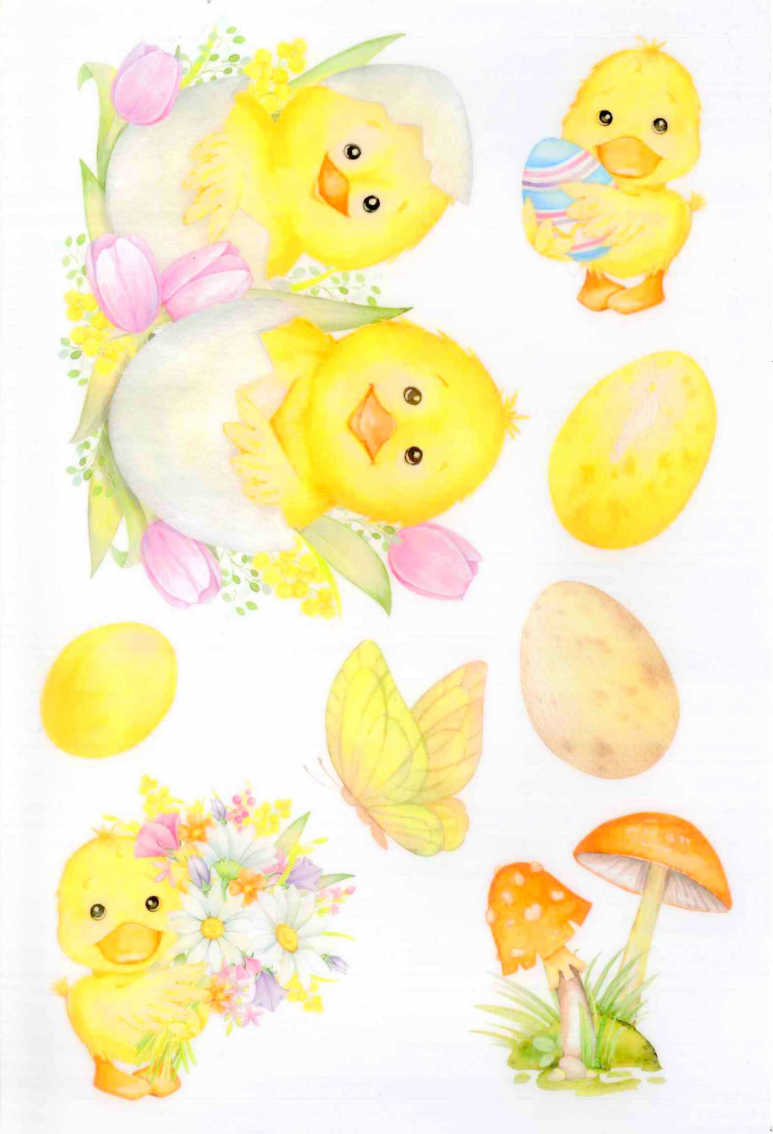 Autocolant static pentru ferestre cu model de primăvară Paști: pui, ouă și ciuperci.