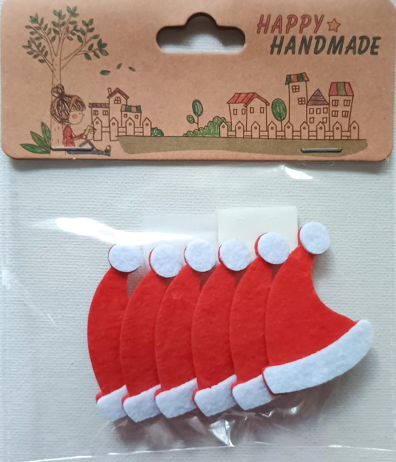 Set 6 căciulițe decupate din fetru/ pasla cu alb-roșu, în 2 straturi, cu grosimea de 2 mm.