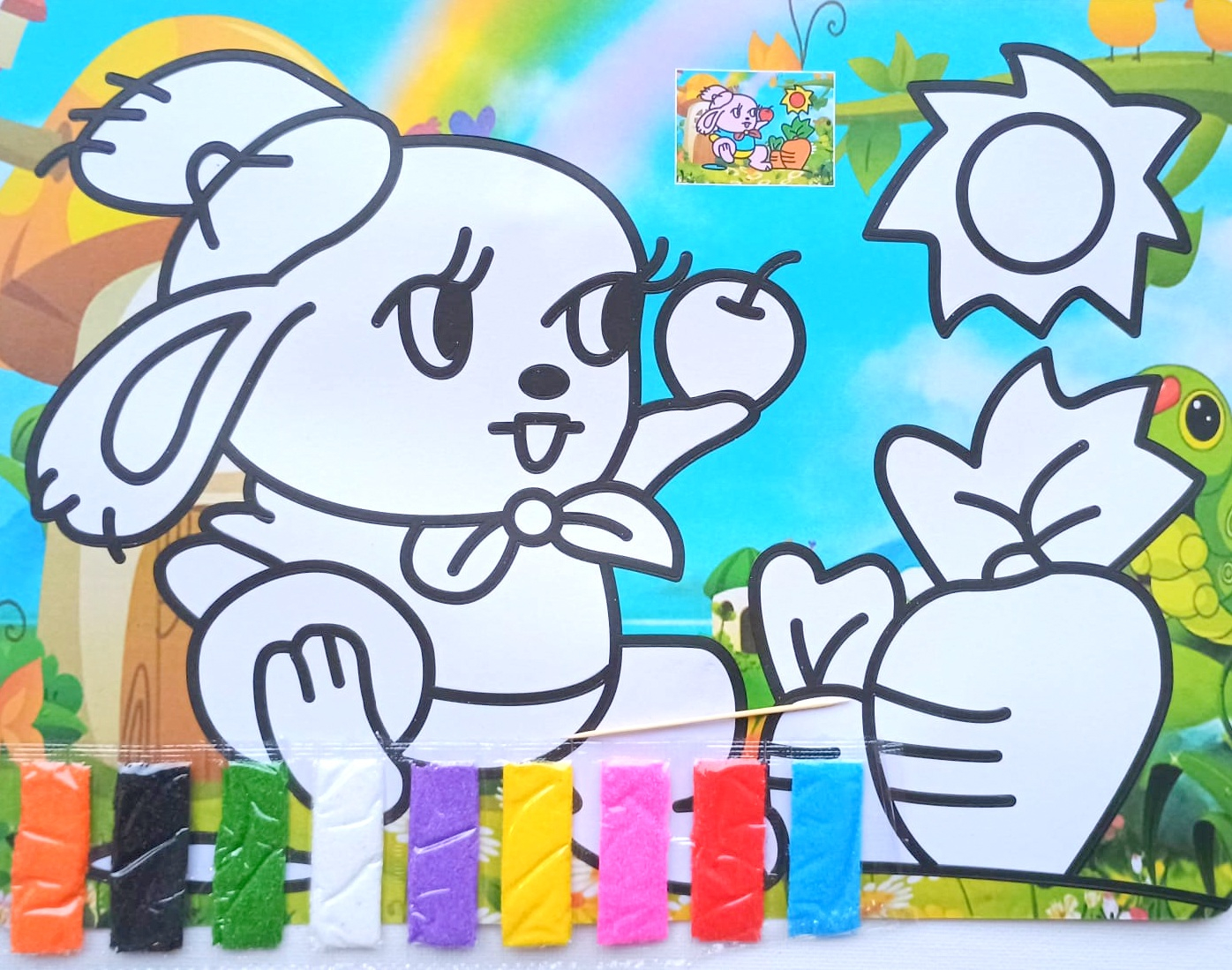Plansa autocolantă 27,3 cm IEPURE + nisip colorat
