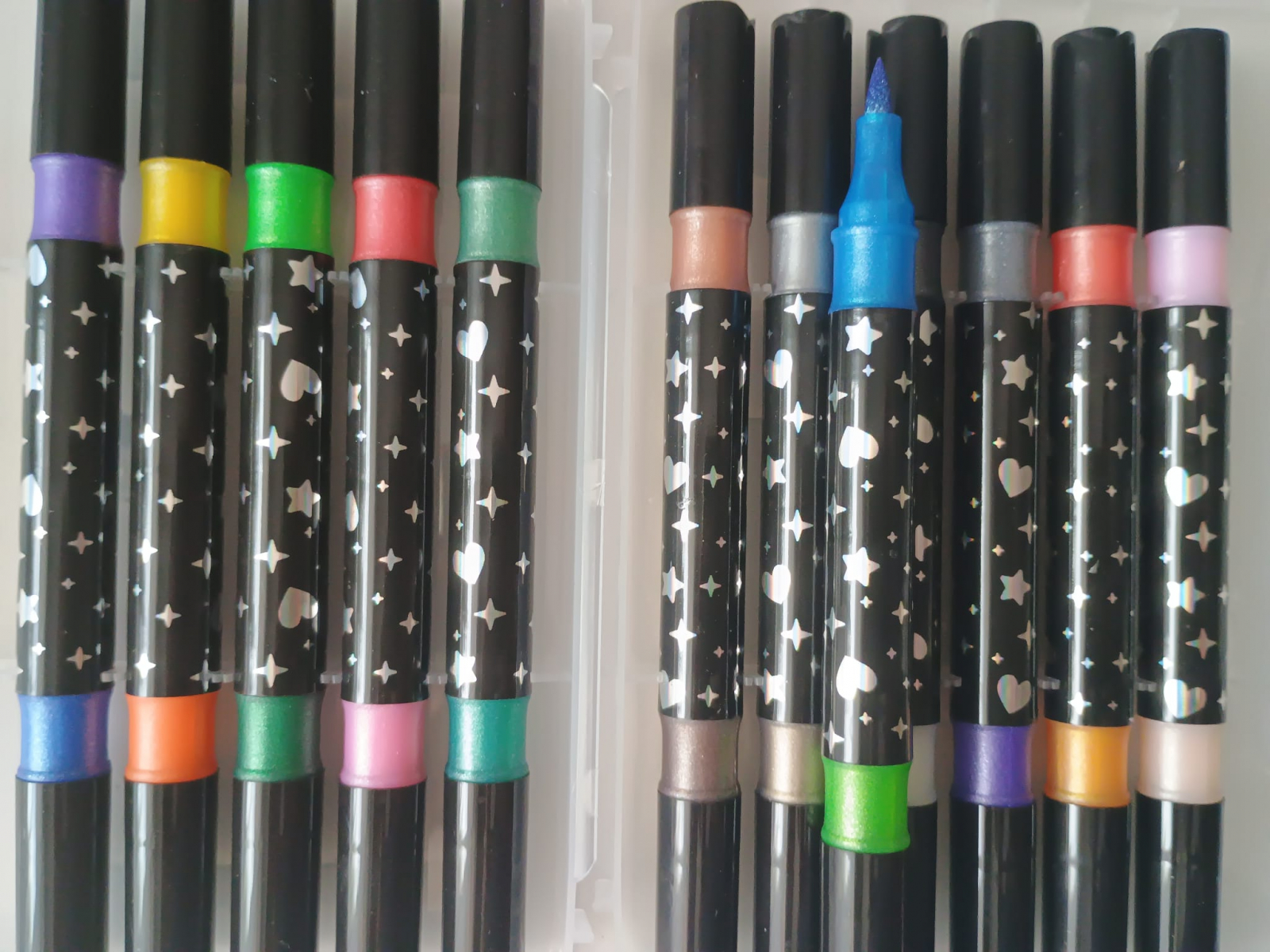 Trusa carioca metalizată cu sclipici cu 2 capete - 12 buc, 24 culori.