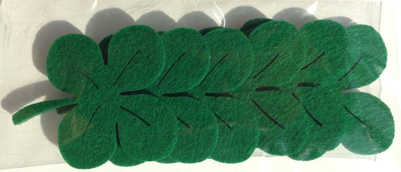 Set 6 frunze de trifoi cu patru foi decupate din fetru verde cu grosimea de 2 mm.