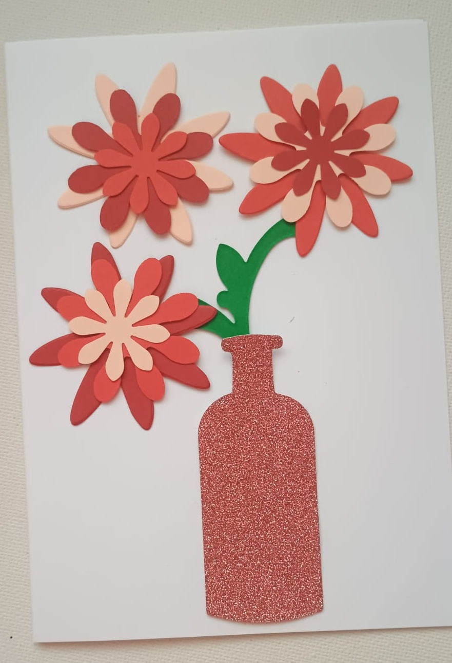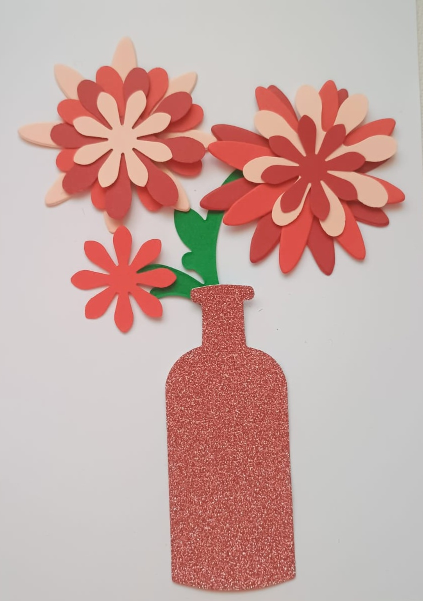 - 1 vază decupată din hartie holografica autoadeziva maro-nisip glitter cu înălțimea de 7 cm