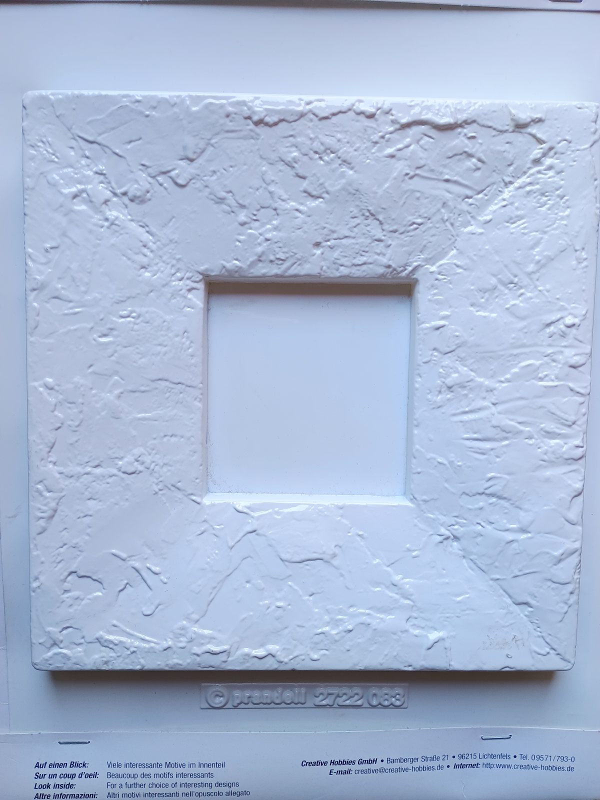 Matriță pentru turnarea unei rame din ipsos. Dimensiunea ramei este de 22 cm/ 21 cm, iar a matriței este de 32 cm/ 25 cm.