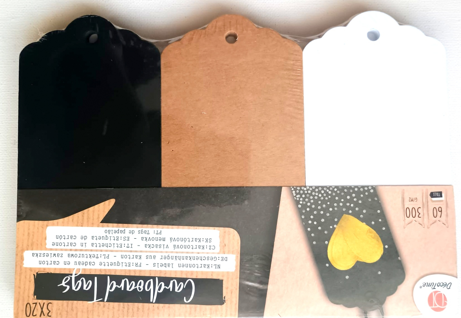 - 60 semne de carte/ etichete cu inserție pentru șnur, având dimensiunea de 15 cm lungime și 7 cm lățime. Material: carton 300 grame. Culori: alb, maro natur, negru. Setul conține câte 20 semne de carte din fiecare culoare.