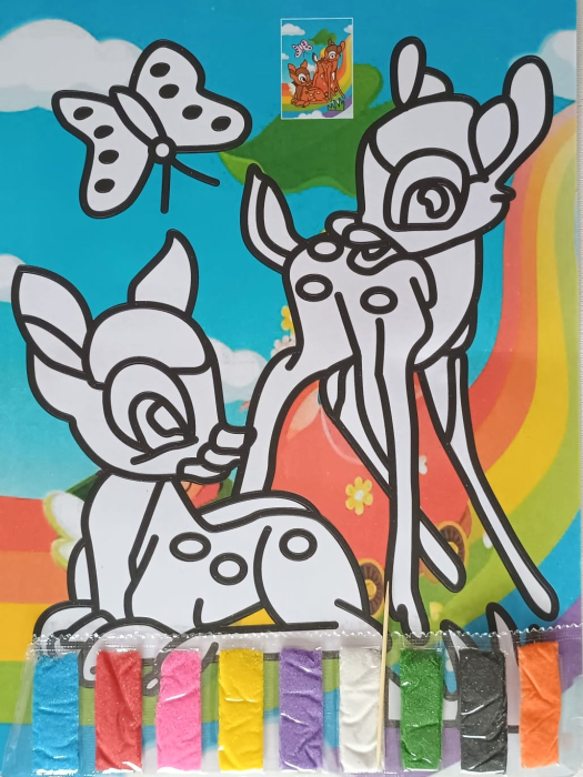 Set creativ pentru confectionarea unui tablou cu nisip colorat Căprioare.