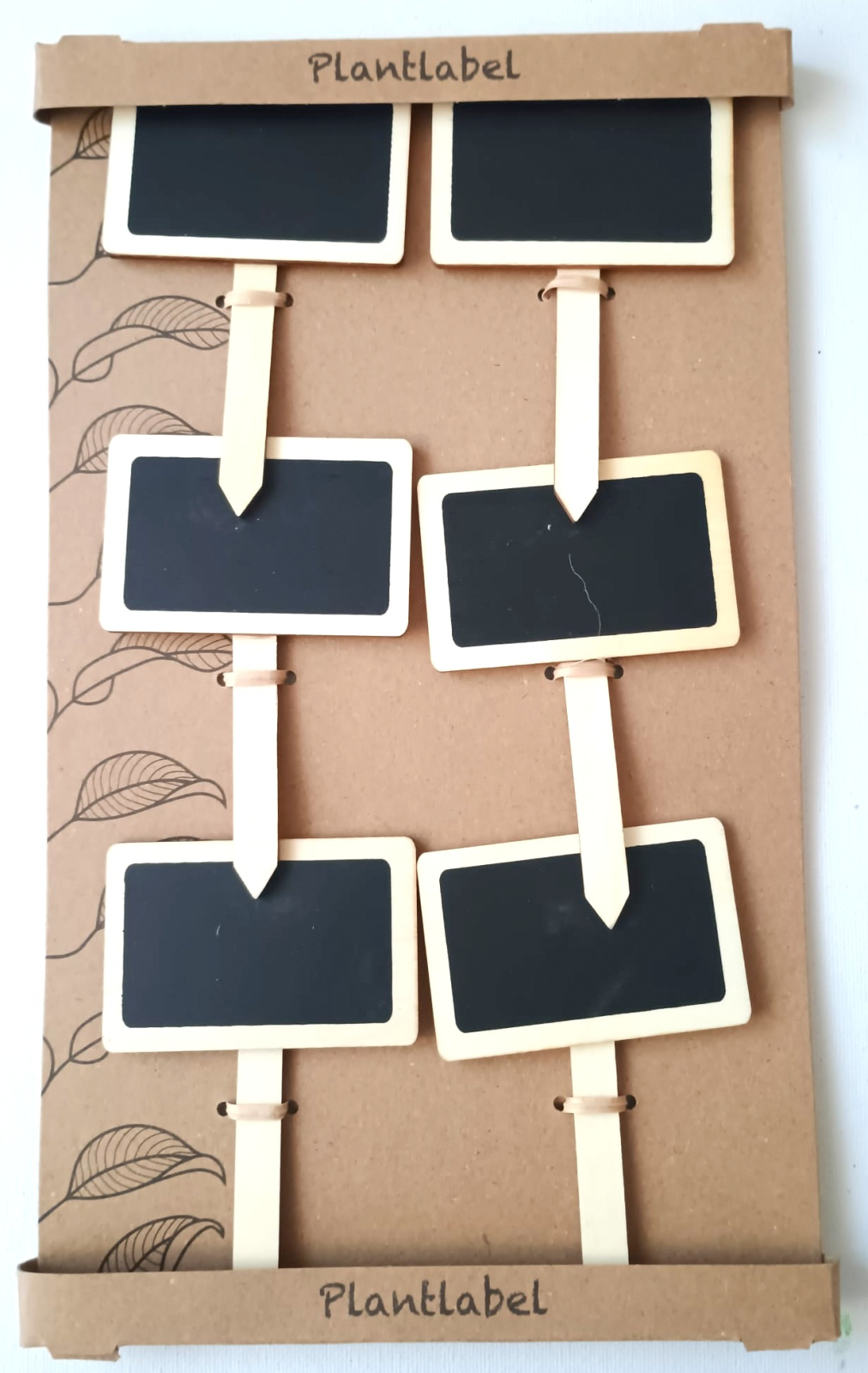 Set 6 etichete din lemn pentru plante sau alte produse. Eticheta are dimensiunea de 7 cm lățime/ 4,5 cm înălțime. Înălțimea finală, cu piciorul din lemn, este de 10 cm
