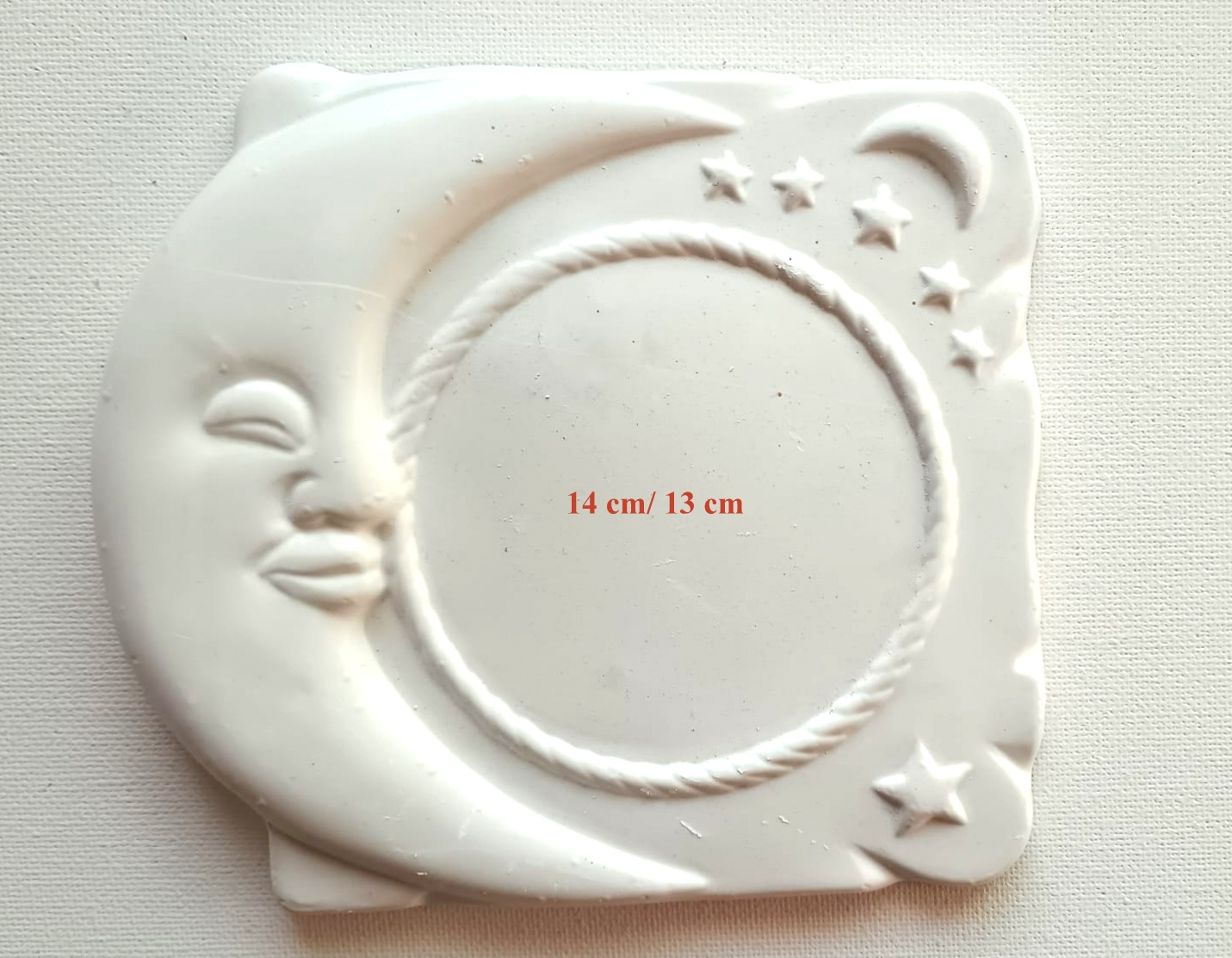Dimensiunea tabloului Luna și stelele este de 14 cm, iar a ramei rotunde din interior 7,5 cm. Rama rotundă permite lipirea unei fotografii sau pictarea unui tablou.